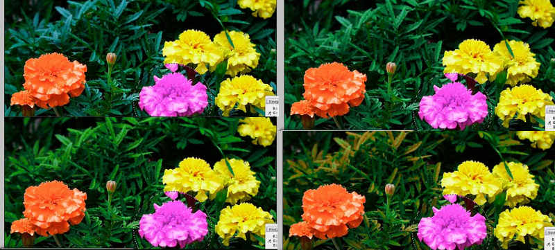ValeryD Если сделать общую (т.е. не выделяя объектов) коррекцию цвета кривыми (Curves) ориентируясь по цвету листвы то желтые цветы тоже исправятся т.к. синий загрязняет желтый и если устранить его то желтый автоматически станет ярче. На картинке пример, напроч это опровергающий, если знать чем-как корректировать. Спецом перекрасил Только зелень ничего НЕ выделяя Для большей наглядности Правый нижний.. перекрасил до ненужности НО более наглядно - Другие цвета не изменились Однако > Ничего не выделяя Вот же блин... Времени на компановку рисунков, ушло больше чем на коррекцию Я не против Лаба, но и козырять им Типа ставьте Шоп будет Лаб - Ну не знаю.. "Кму как"