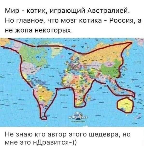 Карту мира в разных странах рисуют по разному. Вот так она выглядит в той самой Австралии. |